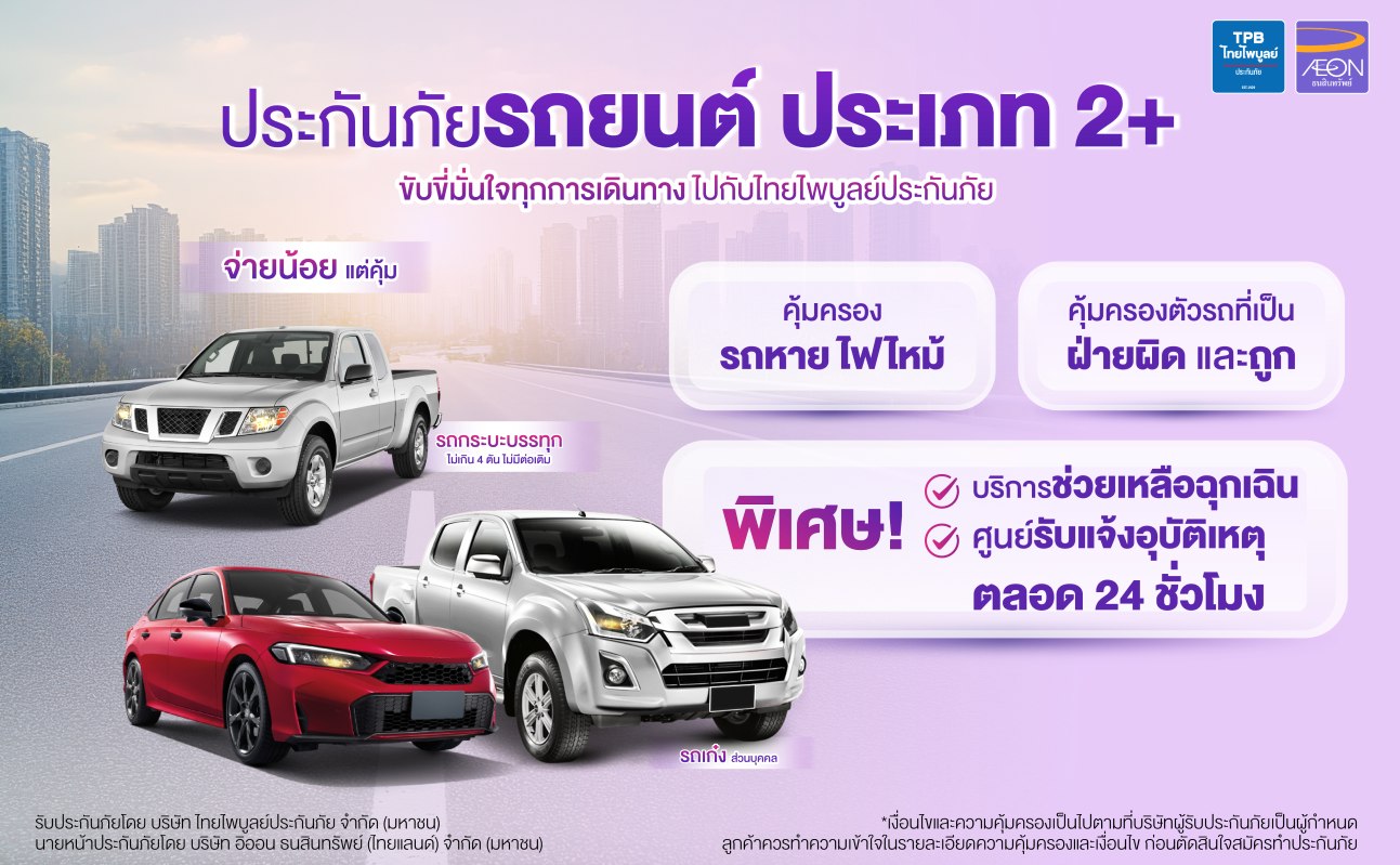 ขับขี่อย่างมั่นใจ ไม่ว่าจะชน ไฟไหม้ รถหาย หรือน้ำท่วม ประกันรถยนต์ชั้น 1+ 2+ และ 3+ จากบริษัทประกันภัย คุ้มครองทั้งรถคุณและคู่กรณี เลือกความคุ้มครองได้ตามไลฟ์สไตล์ พร้อมซื้อคู่กับ พ.ร.บ. ได้ในคลิกเดียว