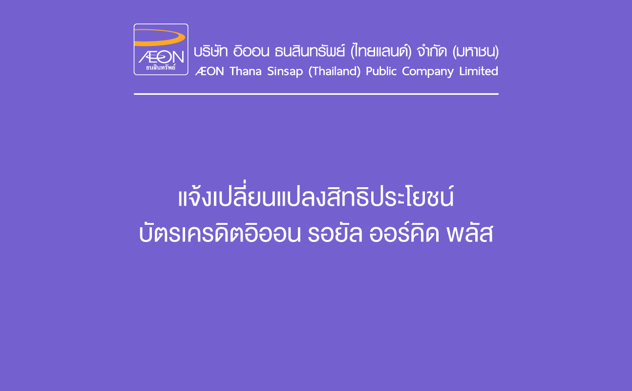 หมายเหตุ: ยกเลิกการมอบเครดิตเงินคืน 3%หมวดร้านอาหารทั่วโลก และ 3%หมวดโรงแรมทั่วโลก จากการใช้จ่ายผ่านบัตรเครดิตอิออน รอยัล ออร์คิด พลัส เวิลด์ มาสเตอร์การ์ด และบัตรเครดิตอิออน รอยัล ออร์คิด พลัส แพลทินัม