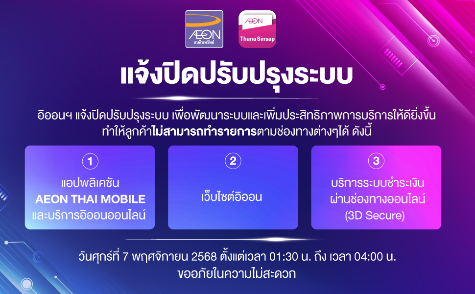 อิออนฯ แจ้งปิดปรับปรุงระบบ เพื่อพัฒนาระบบและเพิ่มประสิทธิภาพการบริการให้ดียิ่งขึ้น